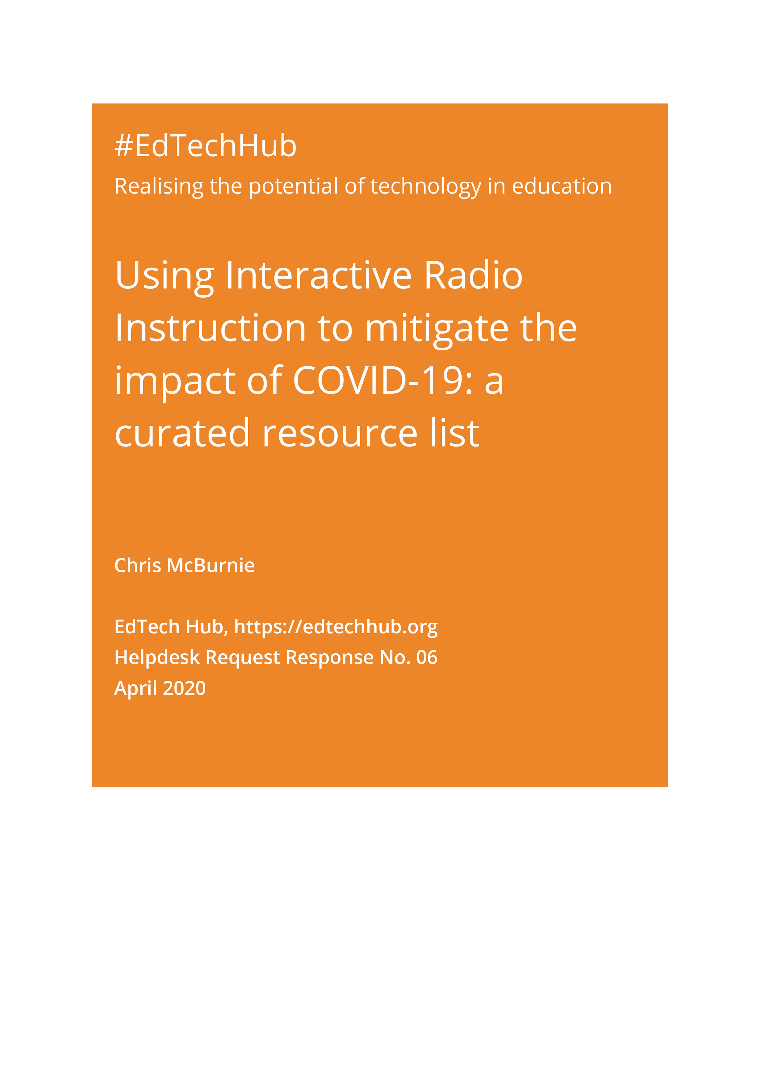 Using Interactive Radio Instruction to Mitigate the Educational Impact of Covid-19: A curated resource list