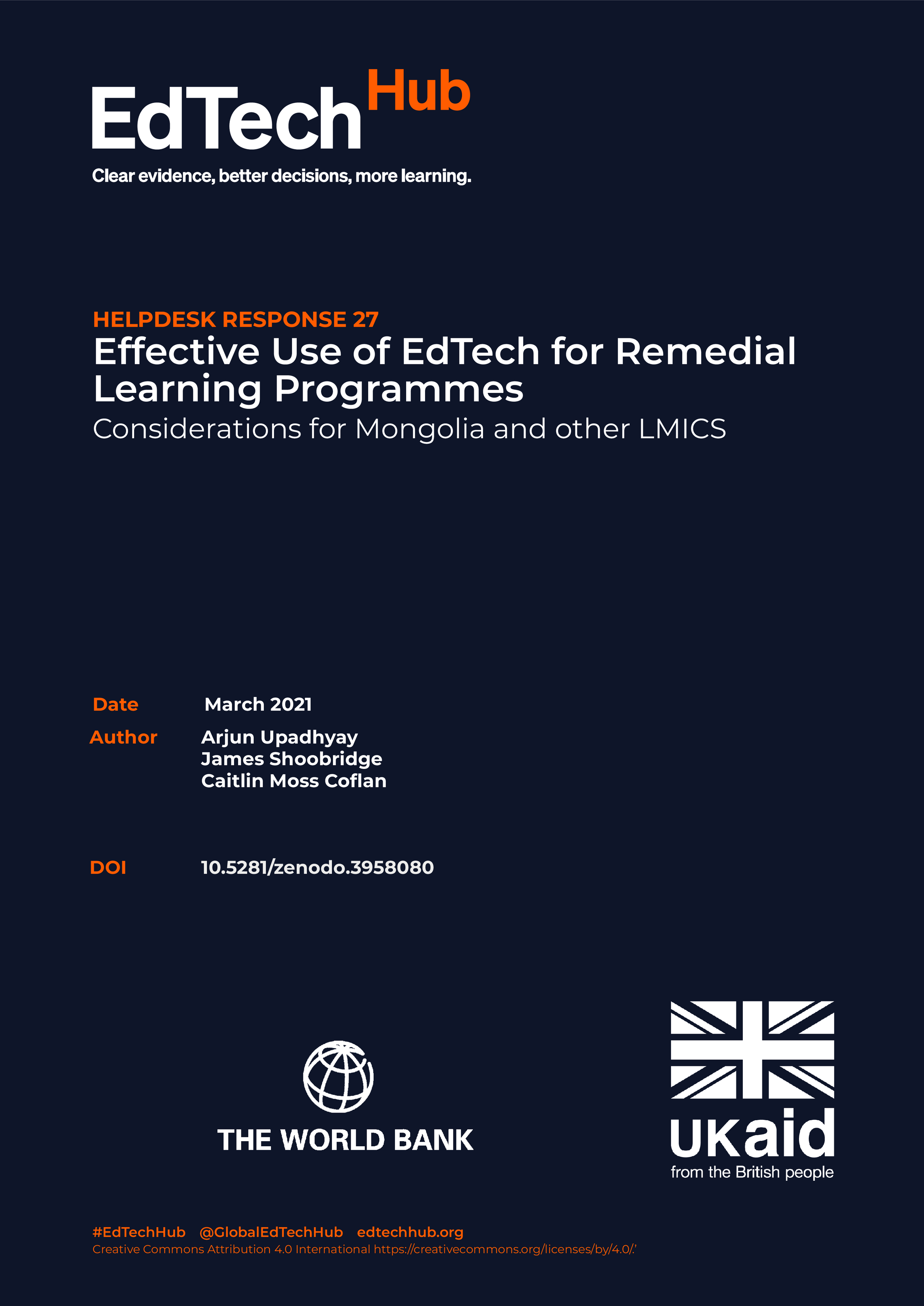 Effective Use of EdTech for Remedial Learning Programmes: Considerations for Mongolia