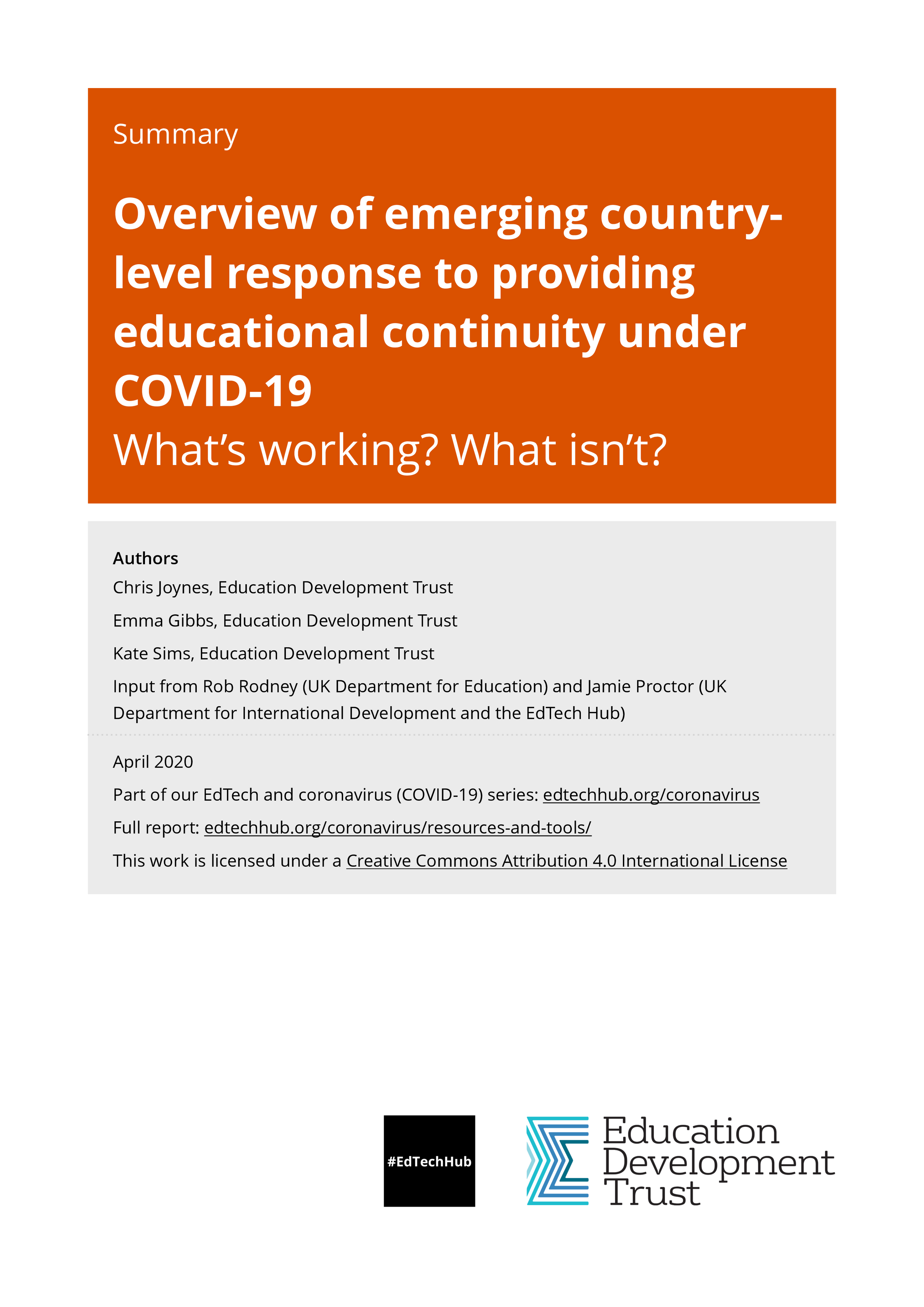 Overview of emerging country-level response to providing educational continuity under COVID-19: What’s working? What isn’t?