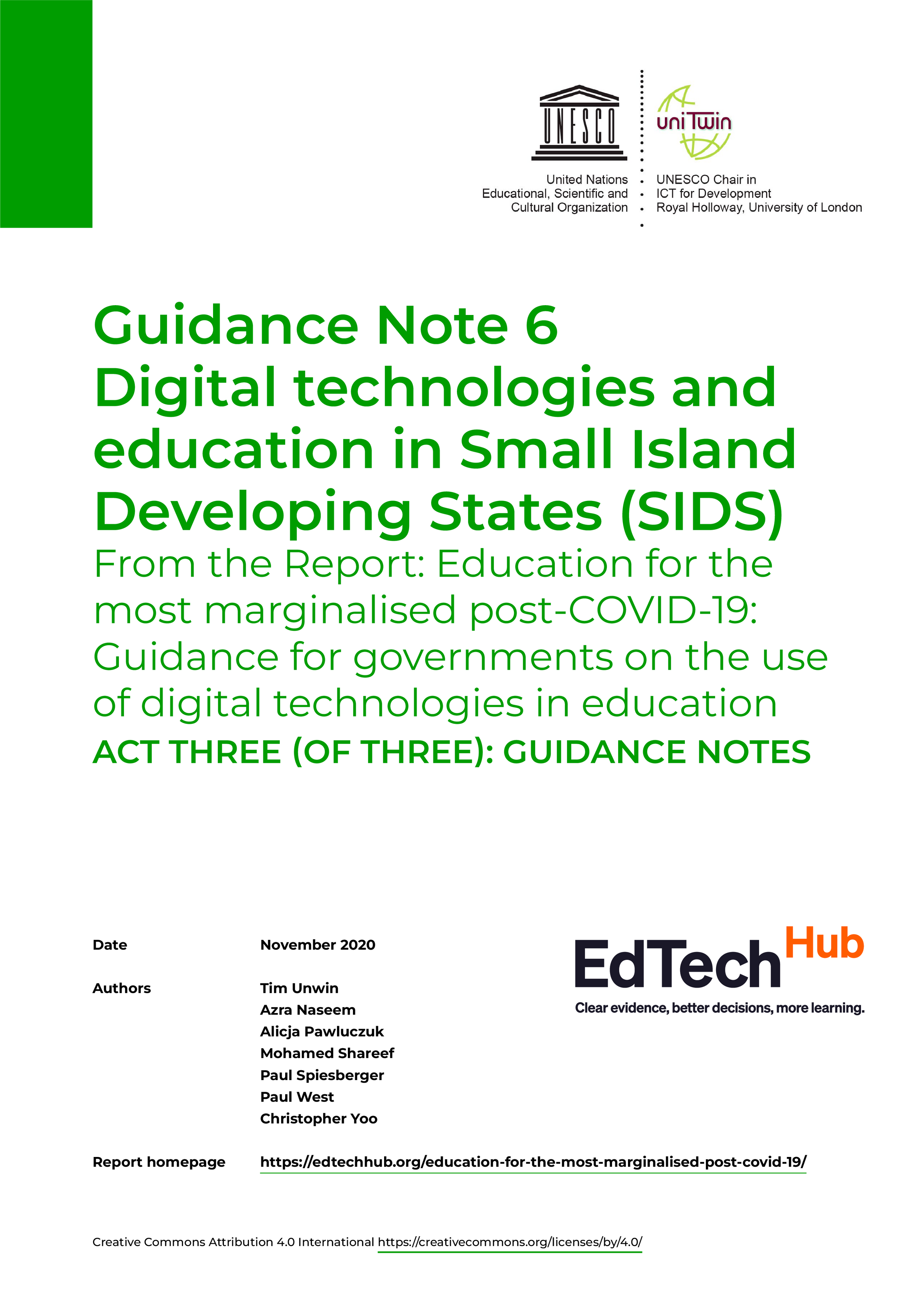 Guidance Note 6 Digital technologies and education in Small Island Developing States (SIDS) From the Report: Education for the most marginalised post‑COVID-19: Guidance for governments on the use of digital technologies in education