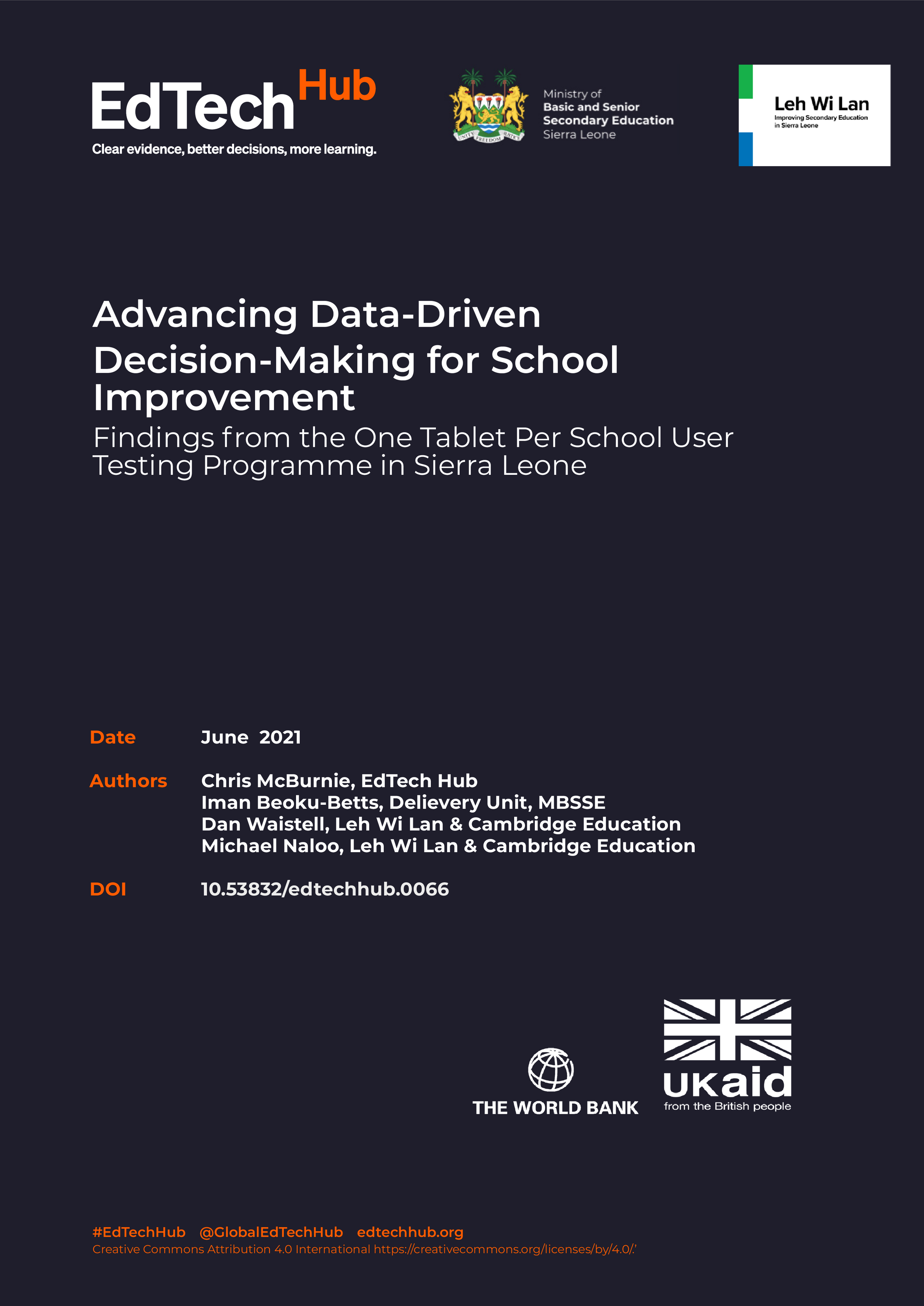 Advancing Data-Driven Decision-Making for School Improvement: Findings from the One Tablet Per School User Testing Programme in Sierra Leone
