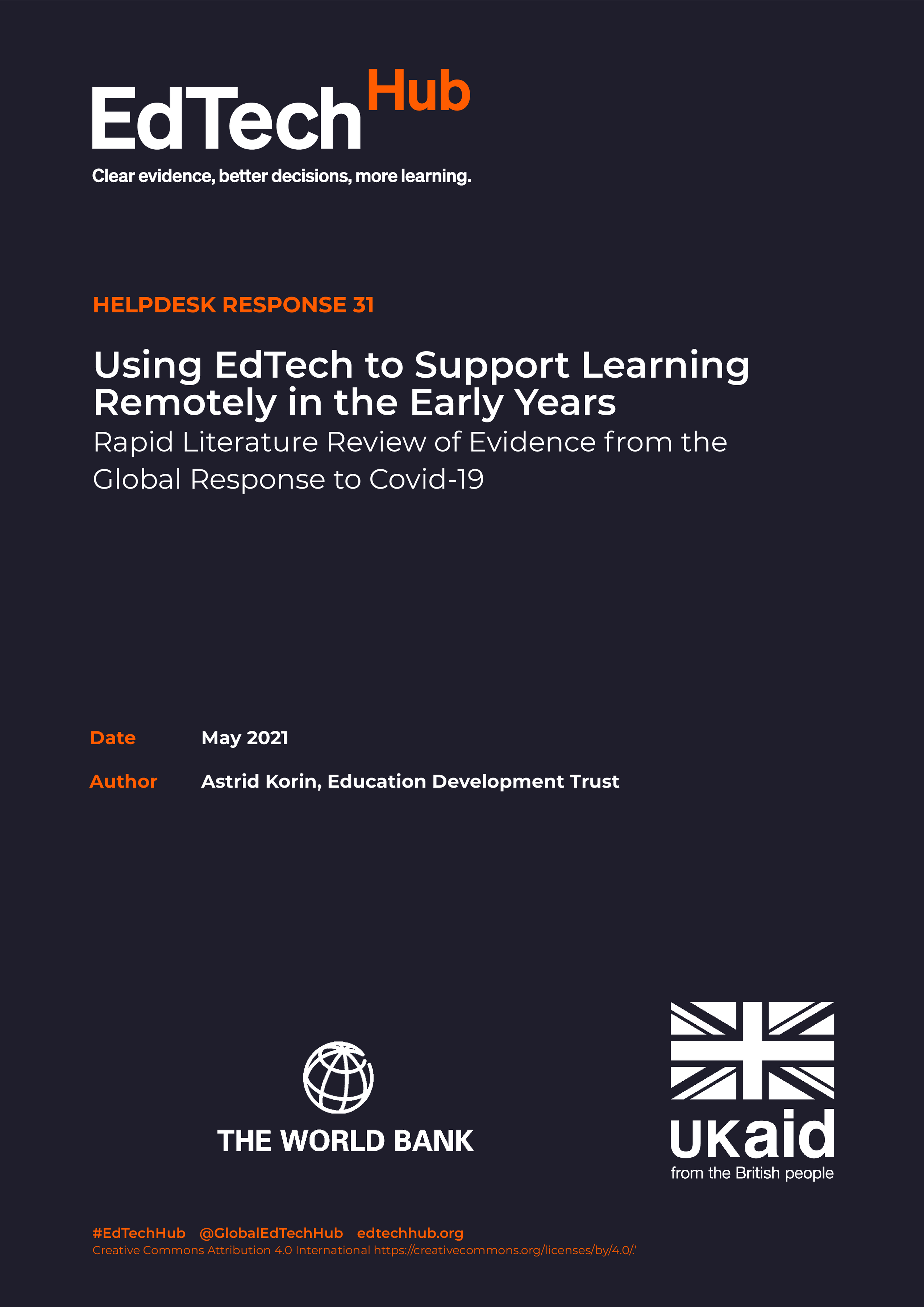 Using EdTech to Support Learning Remotely in the Early Years. Rapid Literature Review of Evidence from the Global Response to Covid-19.