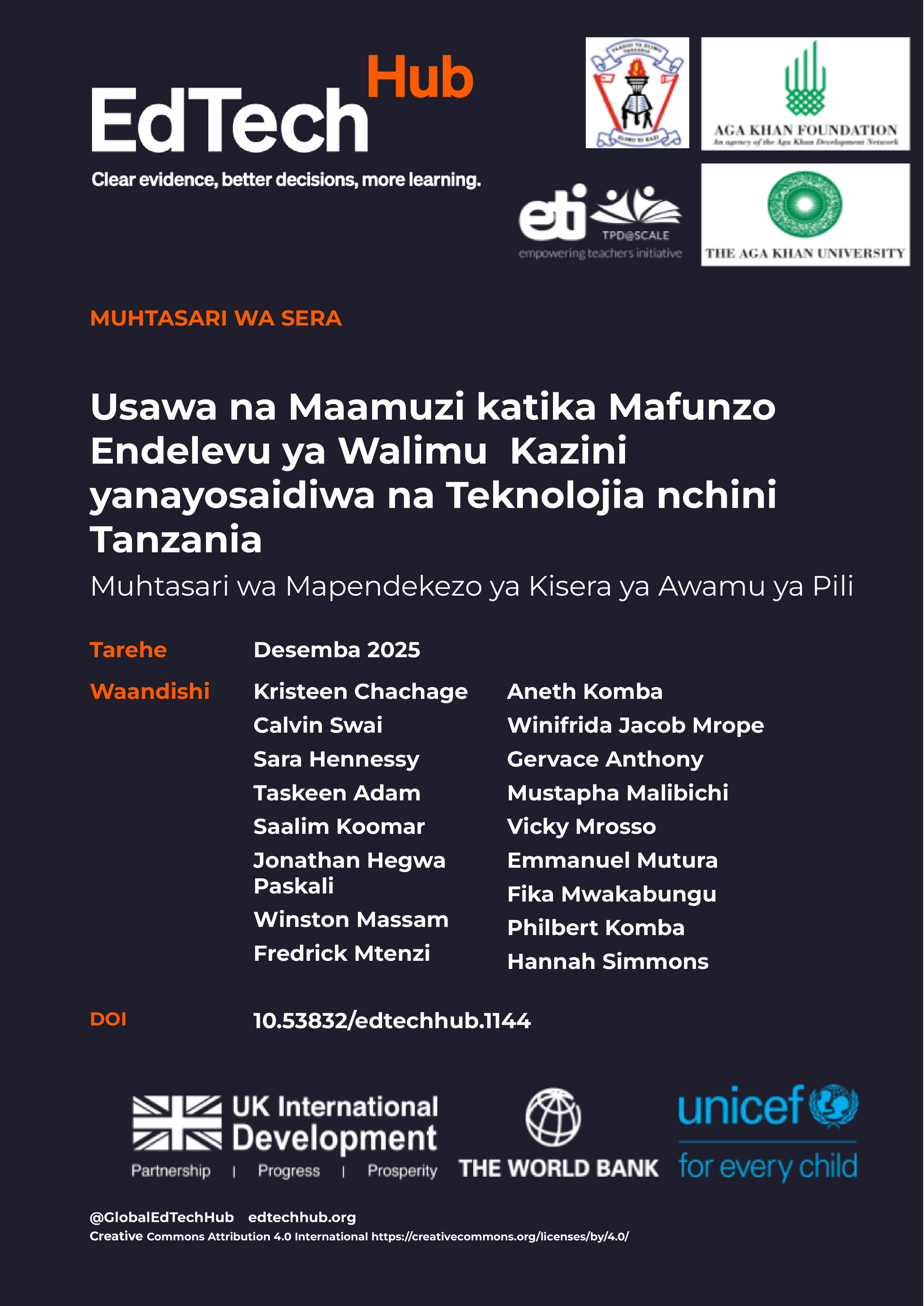 Muhtasari huu wa mapendekezo ya kisera unapatikana kwa Kiingereza hapa https://docs.edtechhub.org/lib/ZXGZK3XS