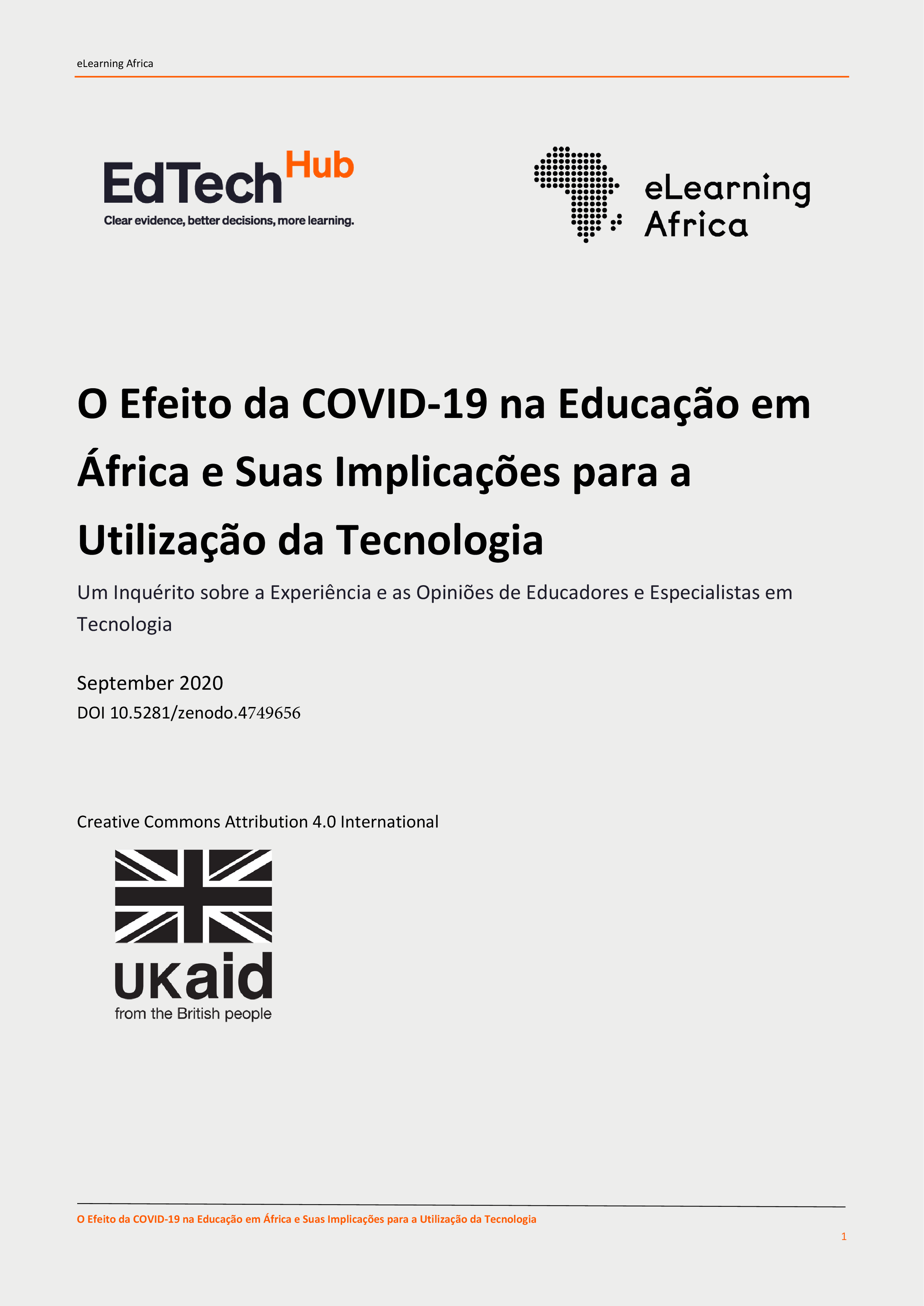 O Efeito da COVID-19 na Educação em África e Suas Implicações para a Utilização da Tecnologia Um Inquérito sobre a Experiência e as Opiniões de Educadores e Especialistas em Tecnologia